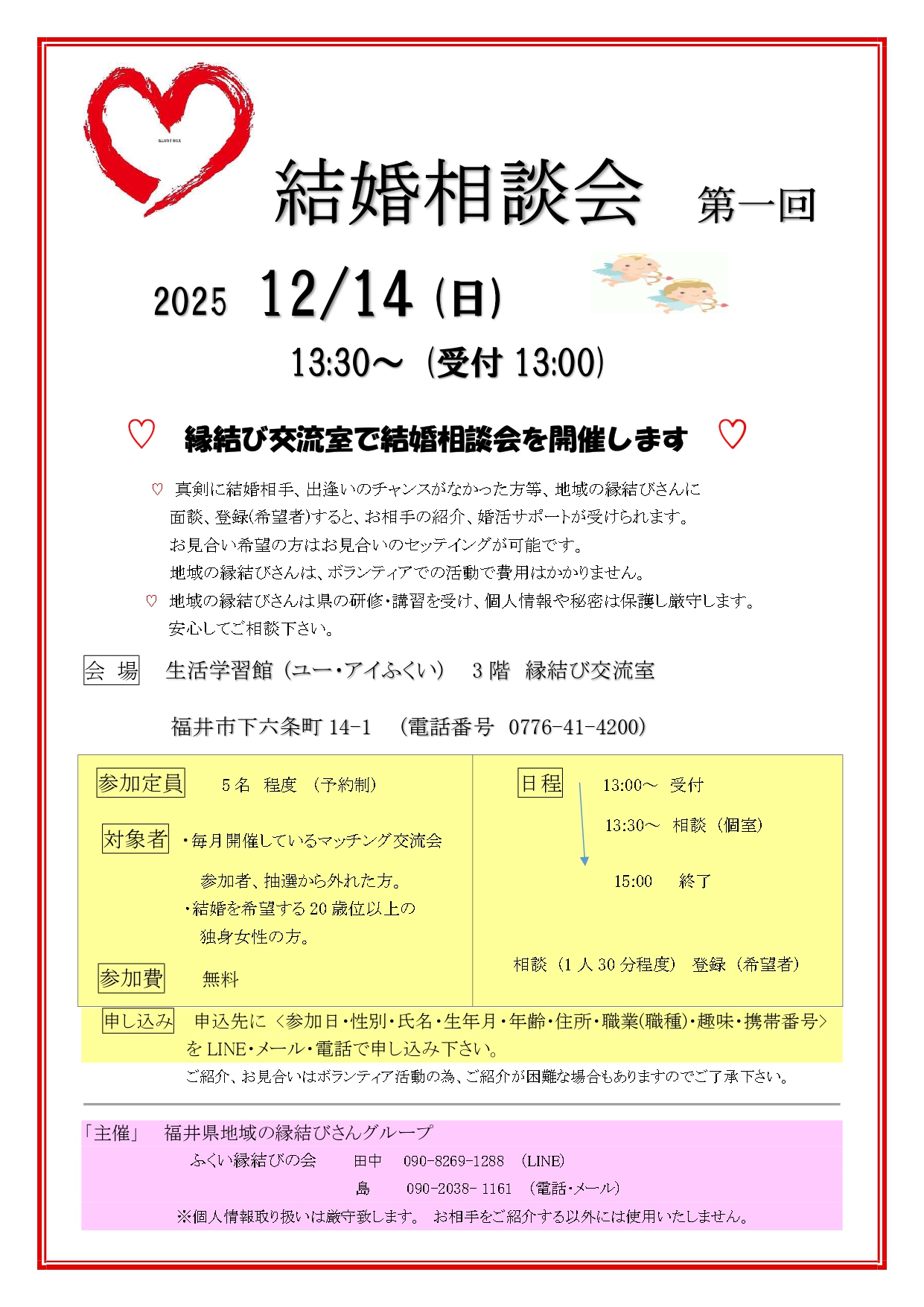 ユー・アイふくい 生活学習館 縁結び交流室(住所:福井市下六条町14-1)