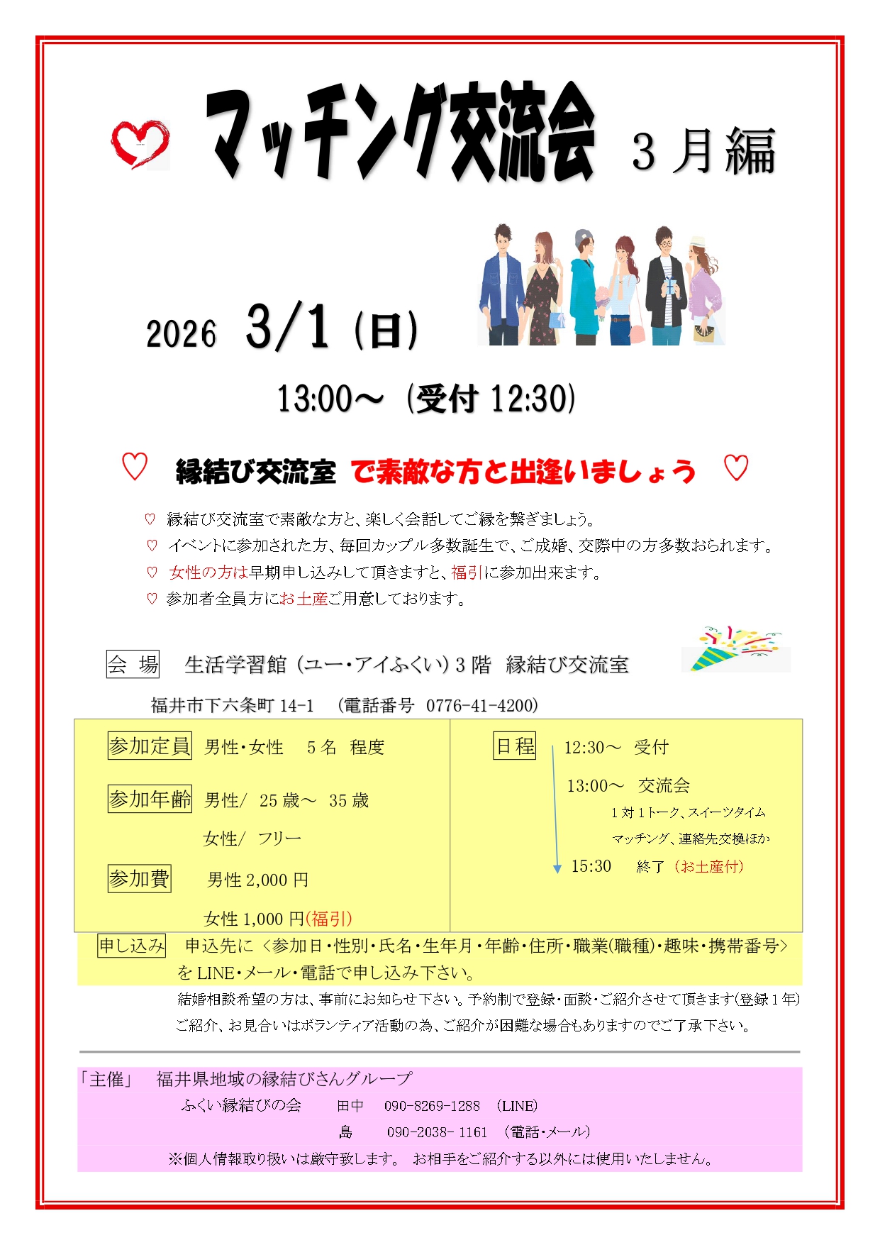 ユー・アイふくい 生活学習館 縁結び交流室(住所:福井市下六条町14-1)