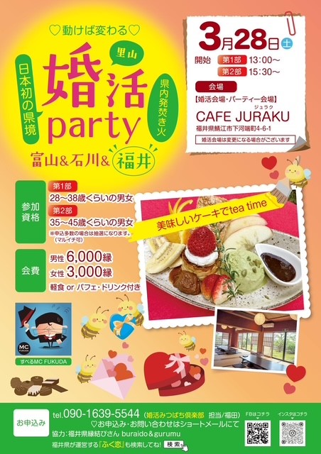 今回は坂井市でオシャレなお店で「美味しいパァフェを囲んで婚活」を開催します。