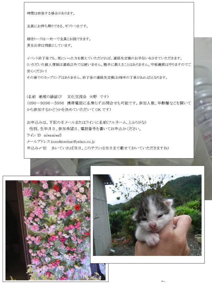 午前10時から:20~35歳の独身男女 午後16時から:20~49歳の独身男女