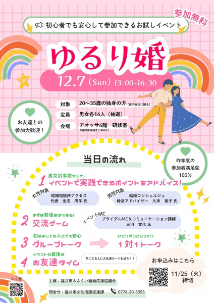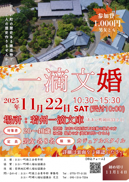 34~48歳の独身男性(あわら市・坂井市在住もしくは在勤)