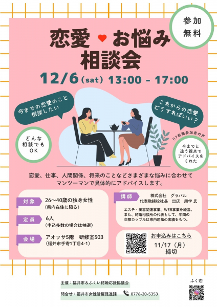 【女性限定】1対1の恋愛・お悩み相談会