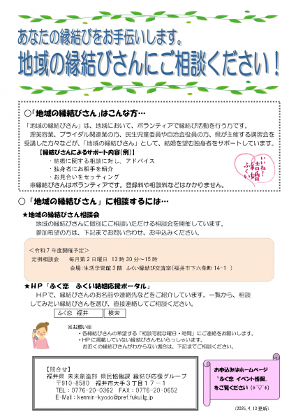 地域の縁結びさんに気軽に相談していただく場として、相談会を開催しています。