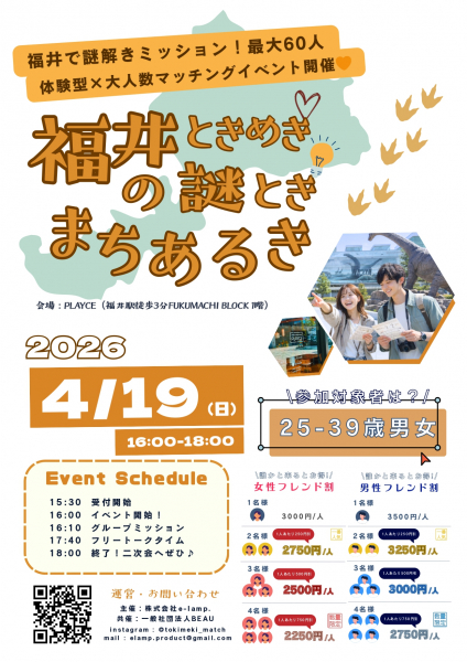 男性 6,500円 / 女性 3,000円(2名様での参加で500円OFF!3名様での参加で1,000円OFF!)
