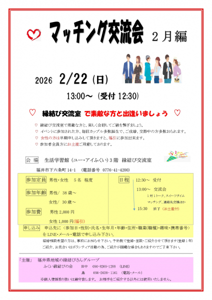マッチング交流会 2月編 ♡ 縁結び交流室で素敵な方と出逢いましょう ♡