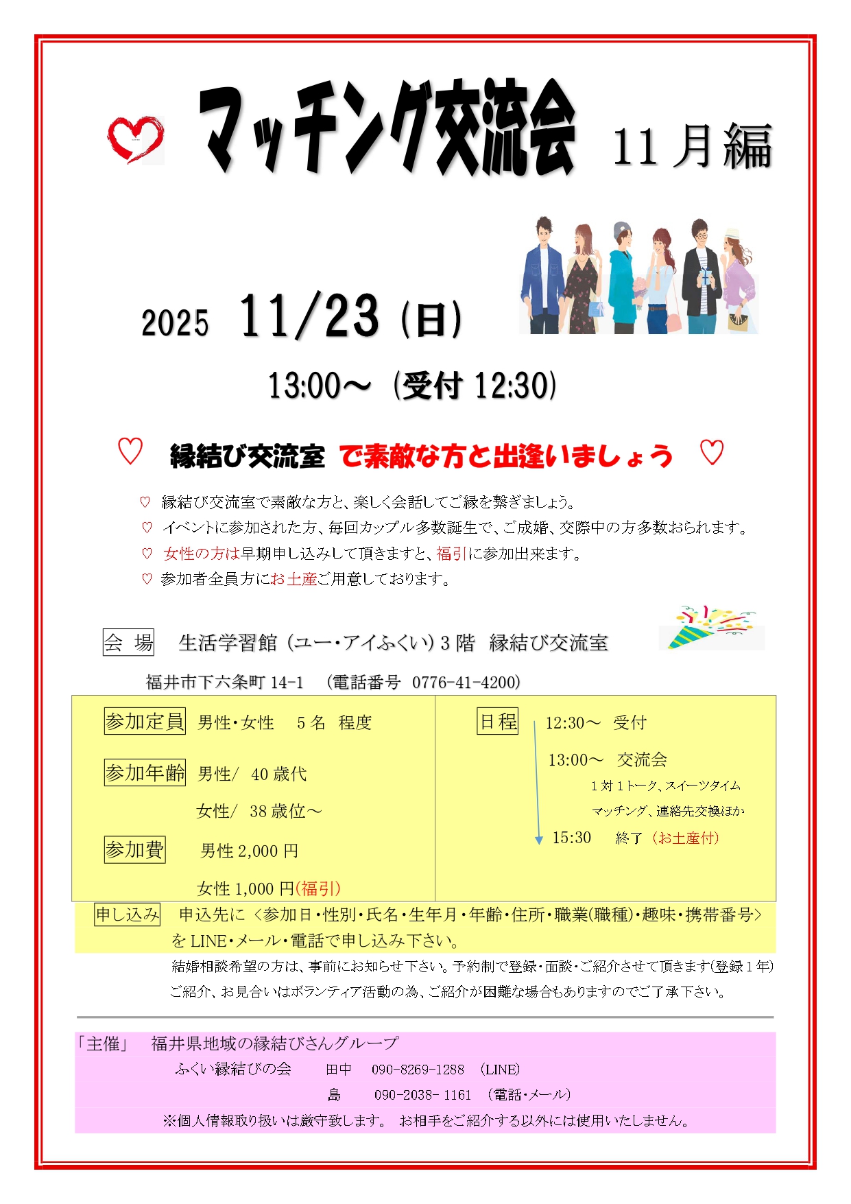 ユー・アイふくい 生活学習館 縁結び交流室(住所:福井市下六条町14-1)