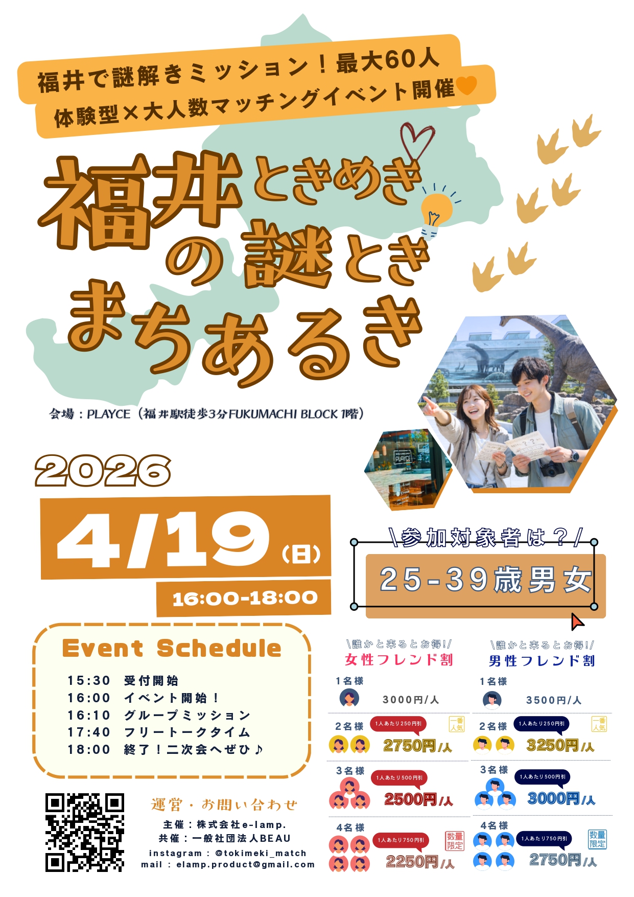 恐竜の街・福井を舞台に、福井駅前を歩きながら謎を解く体験型・街歩きイベントです。