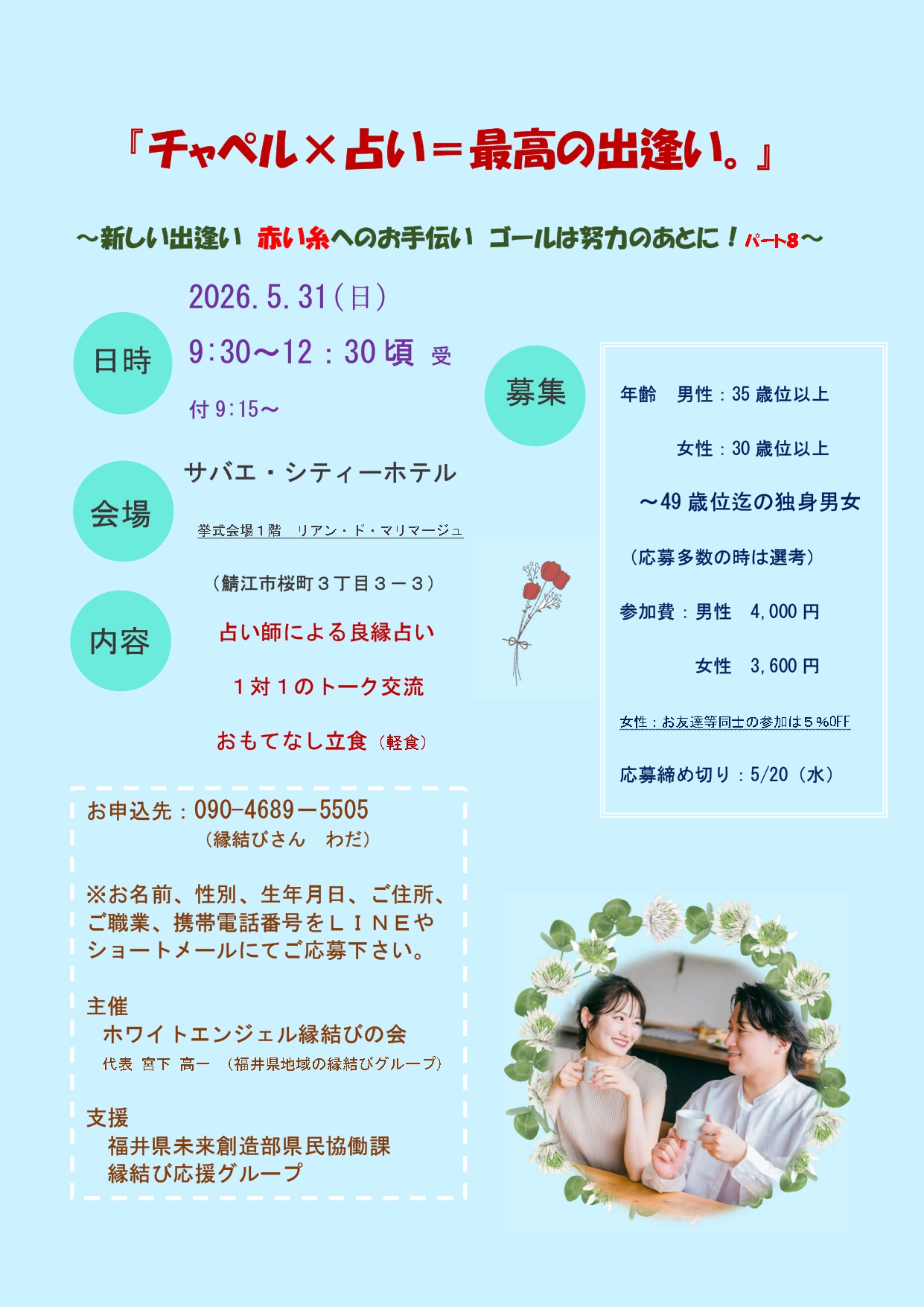 占い師2名を招いて良縁占いを行い異性と交流をするイベントです。