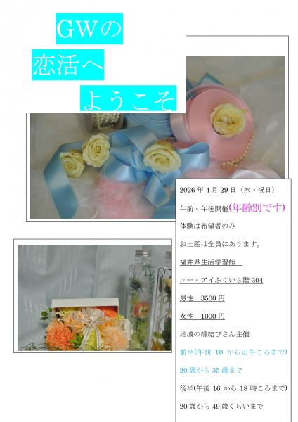 地域の縁結び主催 大野・勝山地区縁結び結婚相談会(4月編)