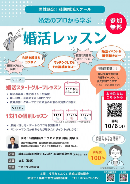 掲載されているイベントに関する一切の責任は主催者に帰属し、ふくい結婚応援協議会は責任を負いかねます。