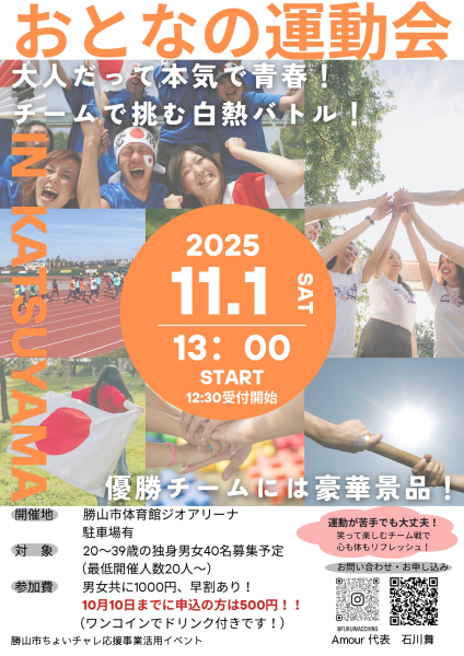 男女ともに1,000円(早割り:10月10日までの申し込みで参加費500円)